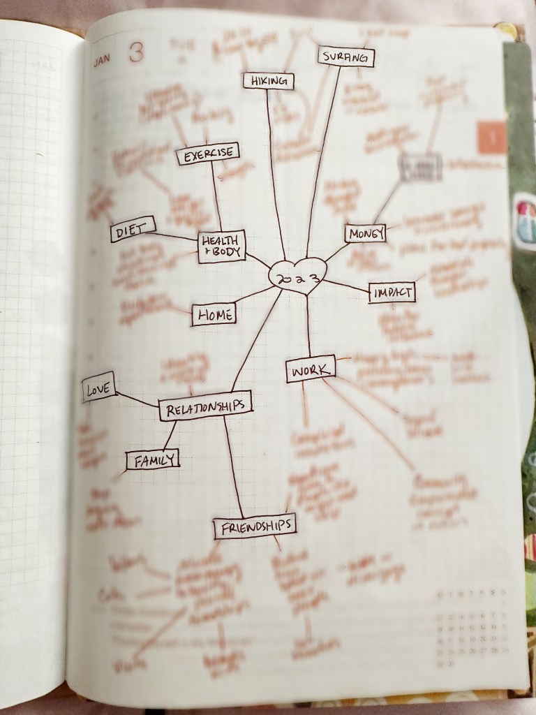 Mind maps are also great for higher level priority setting at the start of each month, quarter and year. I do monthly mind maps to feel better prepared for everything coming. I also do lifetime mind maps, and build back from the things I’d like to accomplish in my life to 10 year and 5 year mind maps. These help ground me in what matters to me most when I’m making major decisions. I’ll do another post on life planning (as opposed to daily planning)!