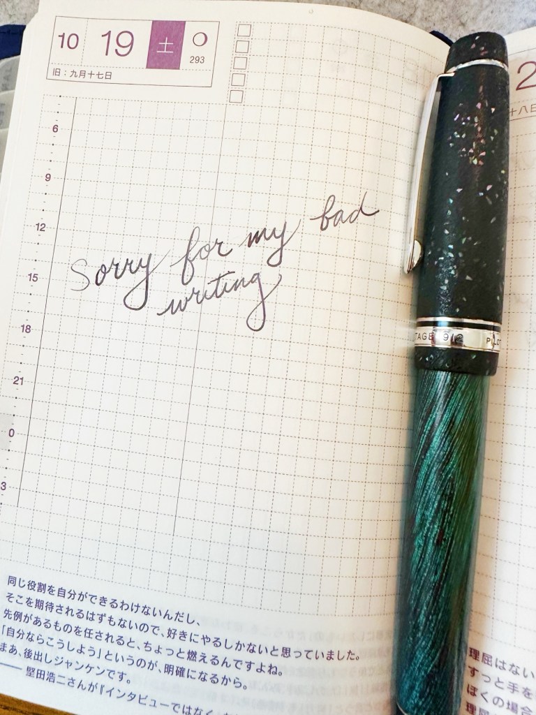 With 10 months to wait, I used the time to have my own ground to a “needlepoint” by Gena (Custom Nib Studio), making the FA even more special for when I try to fake some calligraphy, and also to be more suitable for everyday writing for me. They took a while, but did an awesome job—I feel almost guilty to own a pen that’s wasted on me.