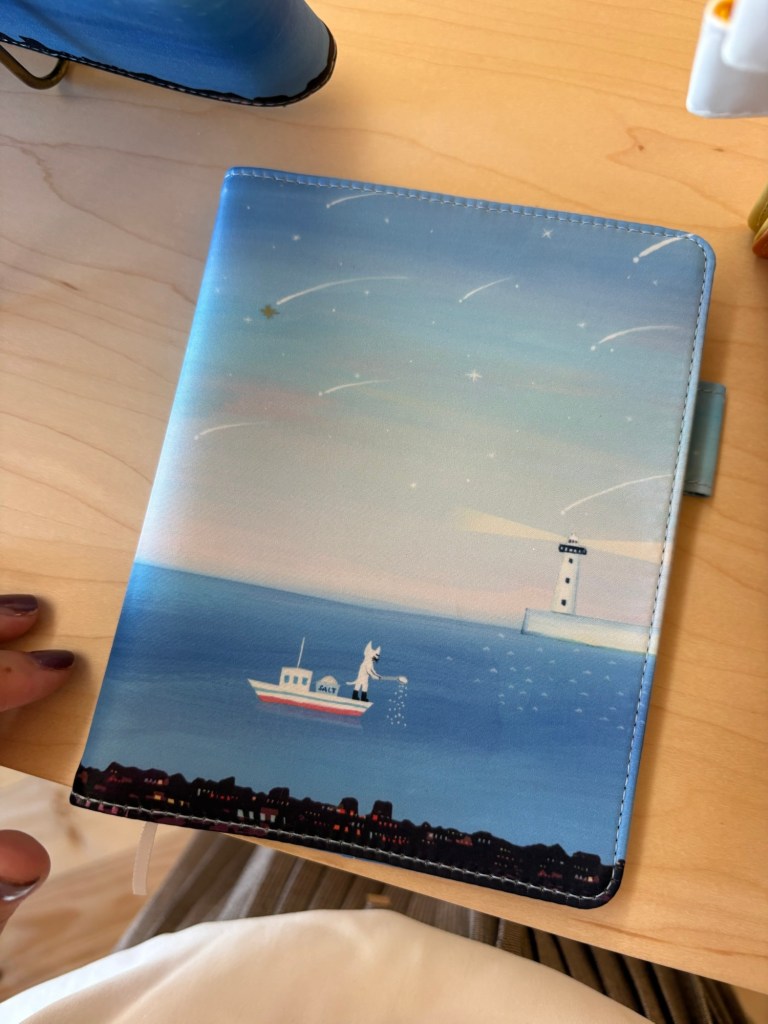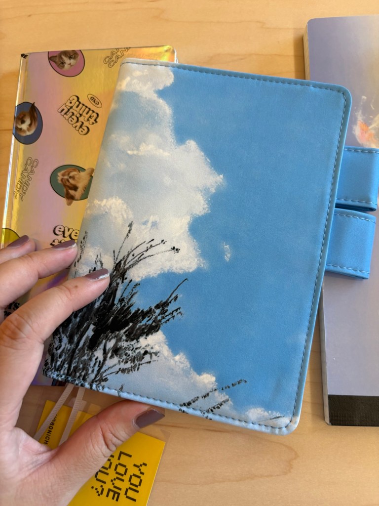 - Ok so speaking of that faux leather. I’m sorry, I hate it so much. I don’t need real or fake leather. I would love it if all covers were just nylon or cotton canvas etc. If they’re going to do leather, real is preferred. Or at least a better faux leather that doesn’t look like plastic that’s going to peel in 3 months. This is what ruined my absolute favorite cover from this year’s lineup, the Field Sky cover. The art is even prettier in person—when they first teased it I didn’t realize it wasn’t a photo. I’m debating if I can get over the interior.